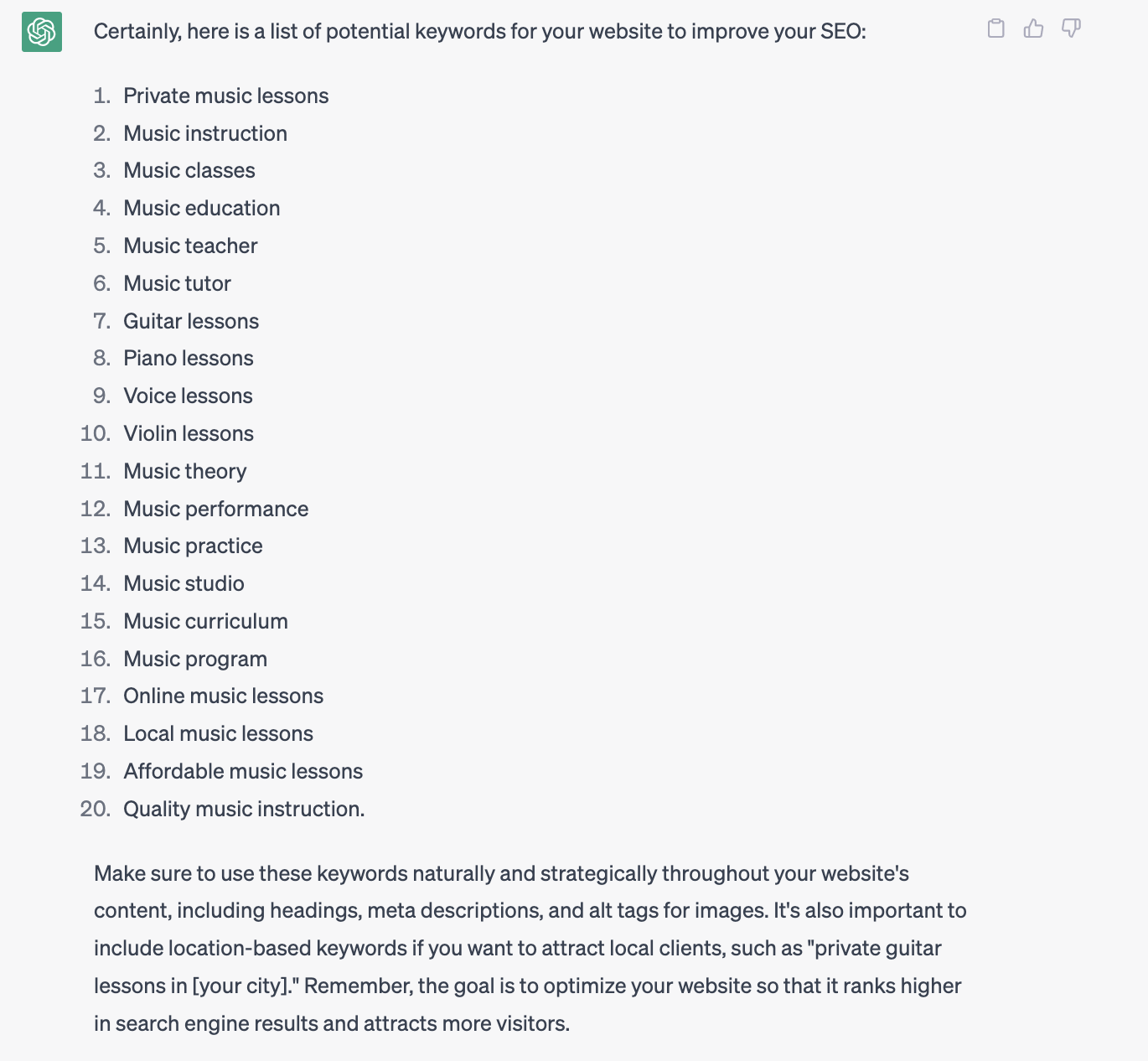 Want to drive more traffic to your website? Use ChatGPT to generate a list of great keywords for your studio website’s SEO!