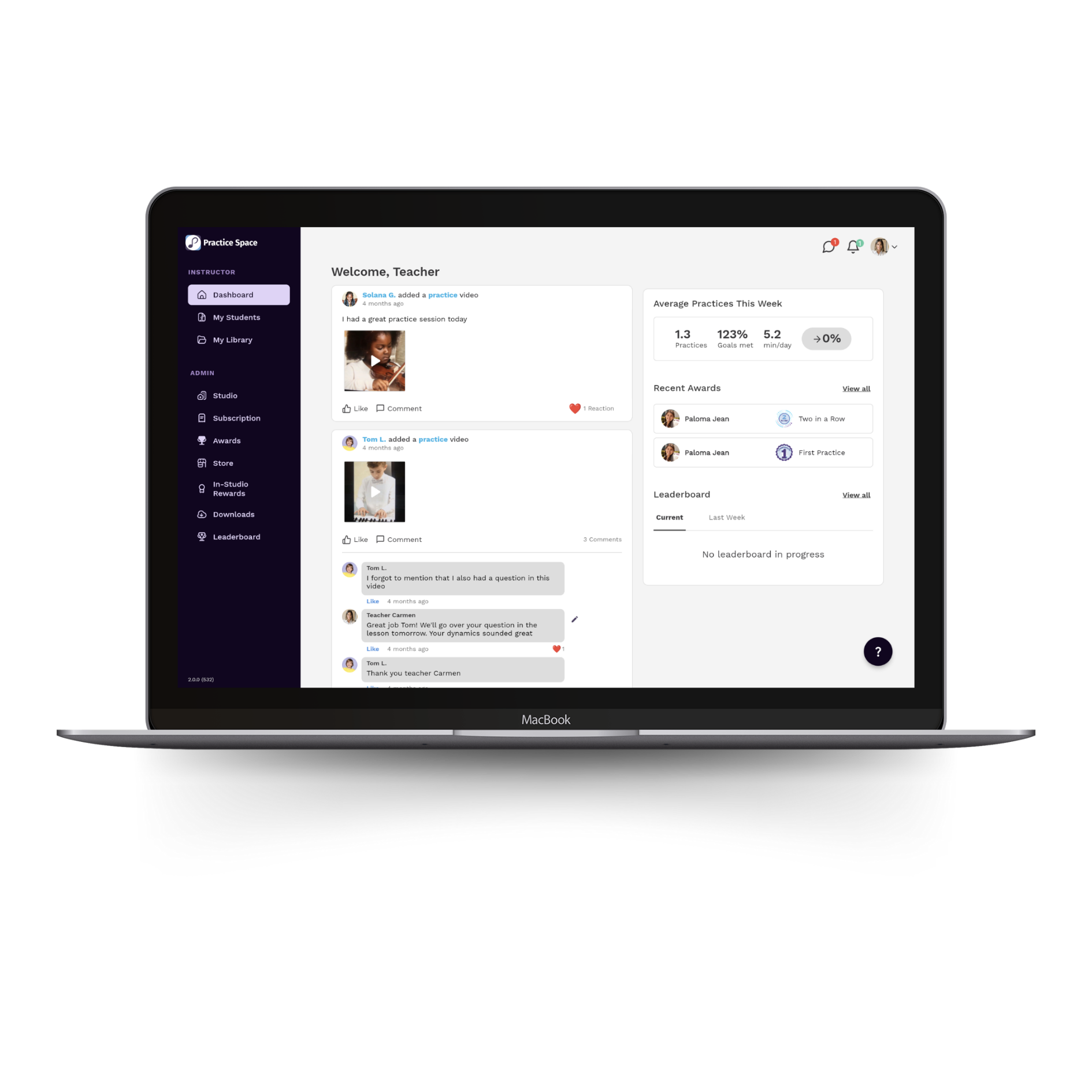 At Practice Space, we know that consistent progress starts with clear insights. That’s why our platform offers powerful tools for teachers and studio admins to track student engagement, celebrate achievements, and support growth—without getting bogged down in spreadsheets or manual logs.
